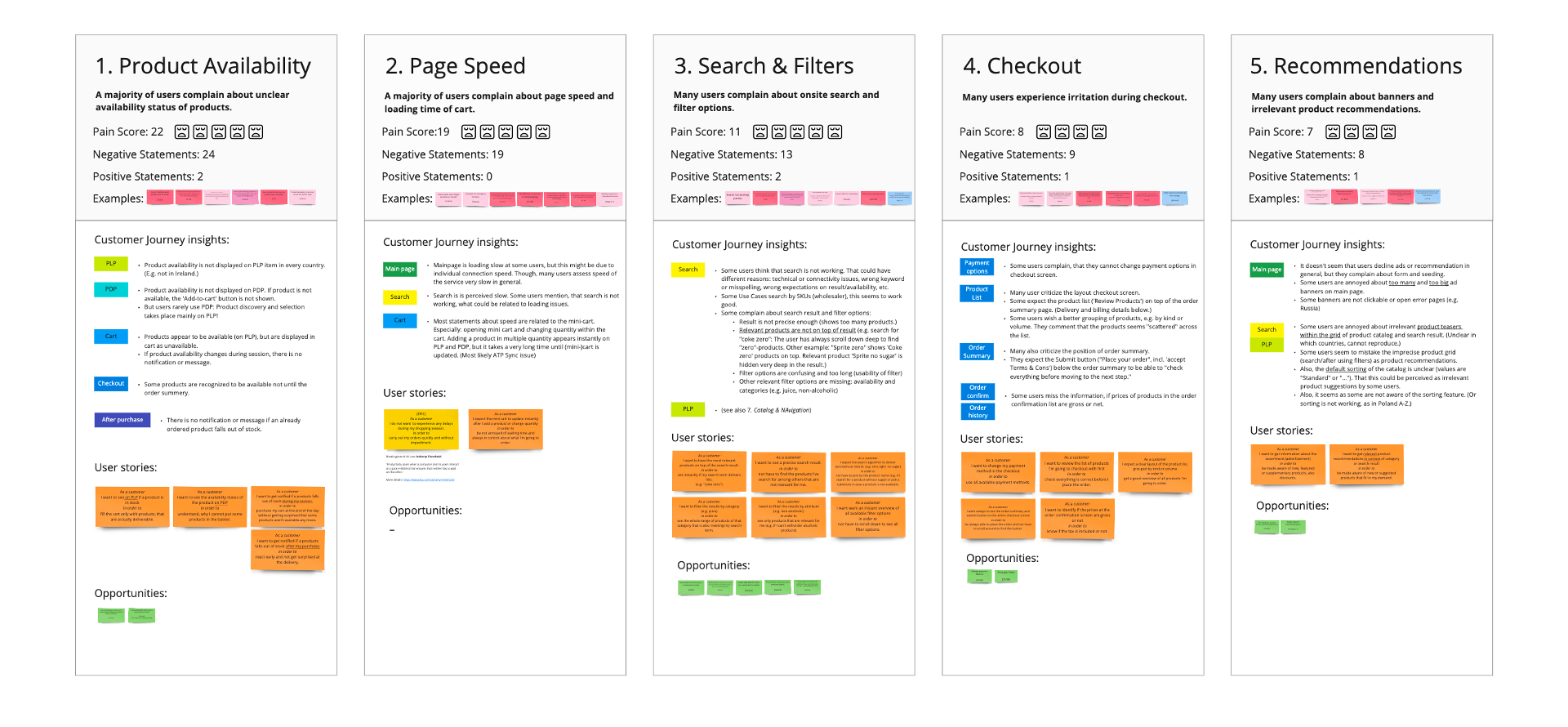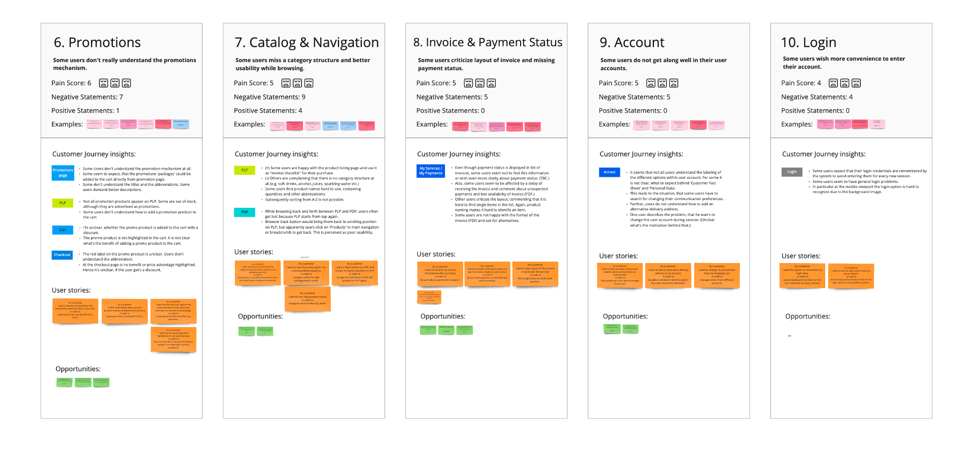 Through pain score analysis, we identified and prioritized the most critical areas impacting user experience, defining a clear roadmap for improvement.