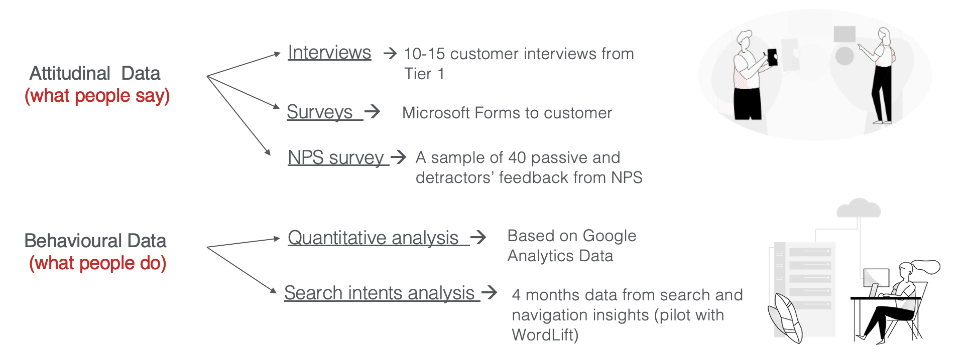Tools: Google Analytics, Microsoft Forms, WordLift AI, Custom Dashboards, Affinity Diagrams, Adobe XD