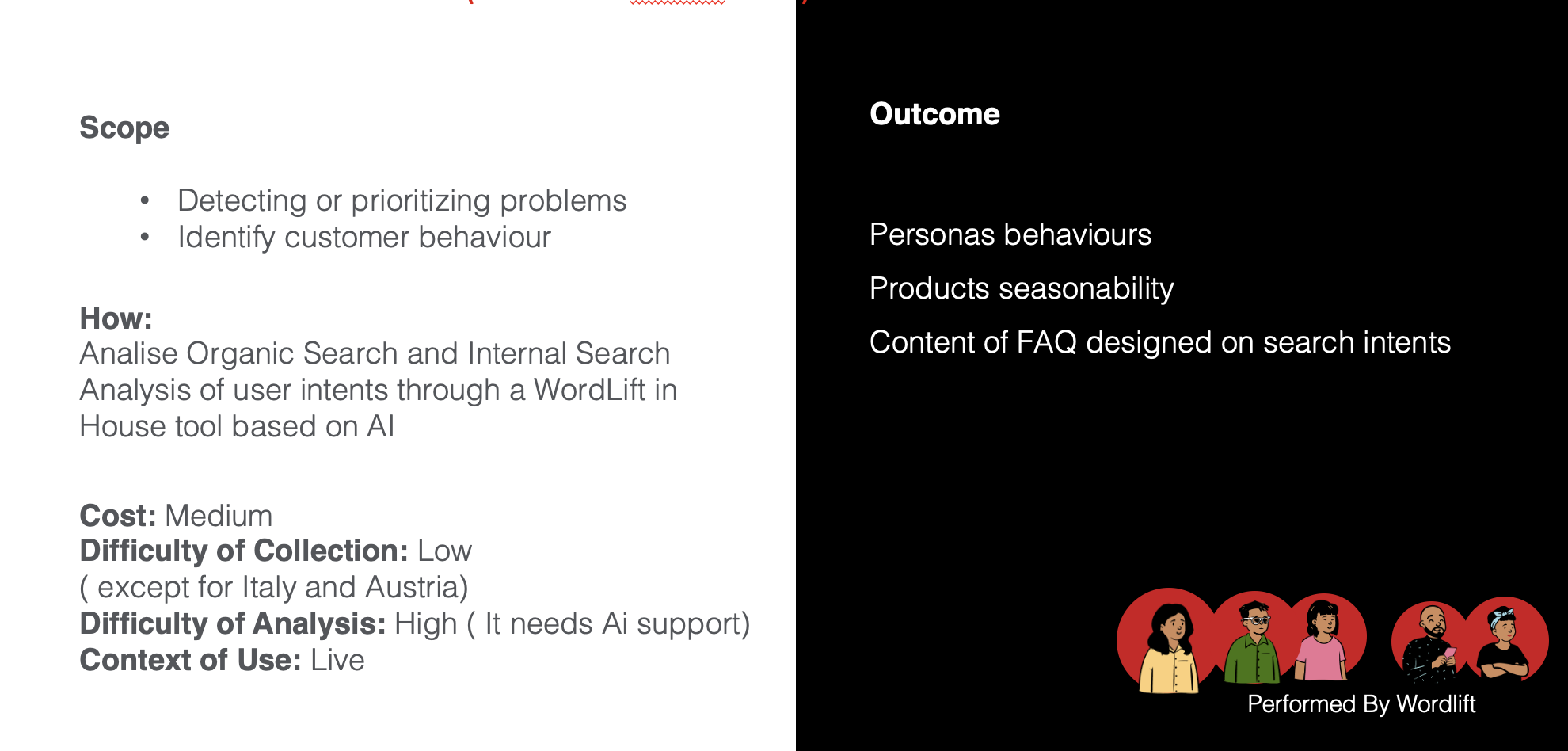 With the support of an AI, we analyze search query and depending on the words used to perform the search we classified in:
