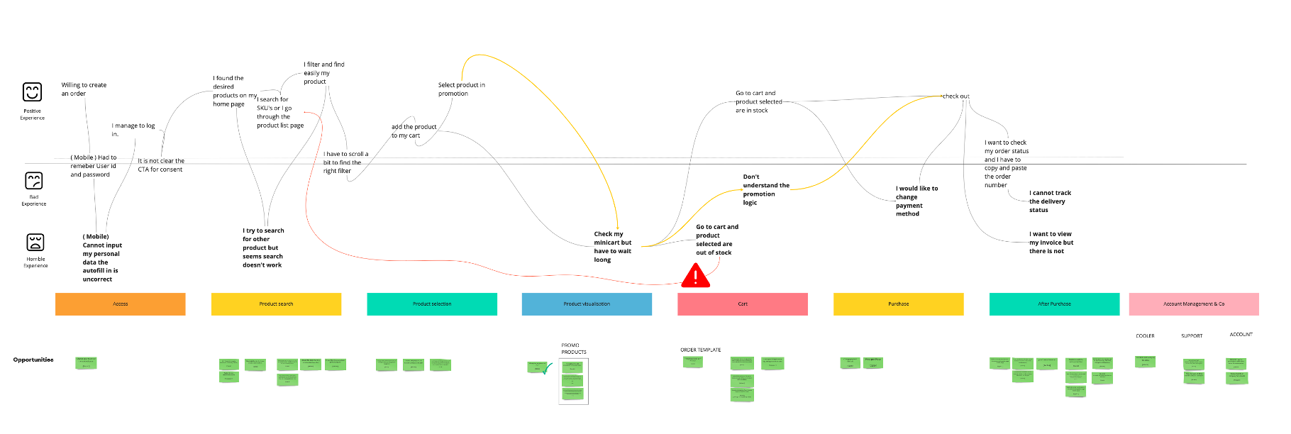Customer Journey → mapped critical moments and “Ah!” opportunities highlighting pain points and improvement areas
