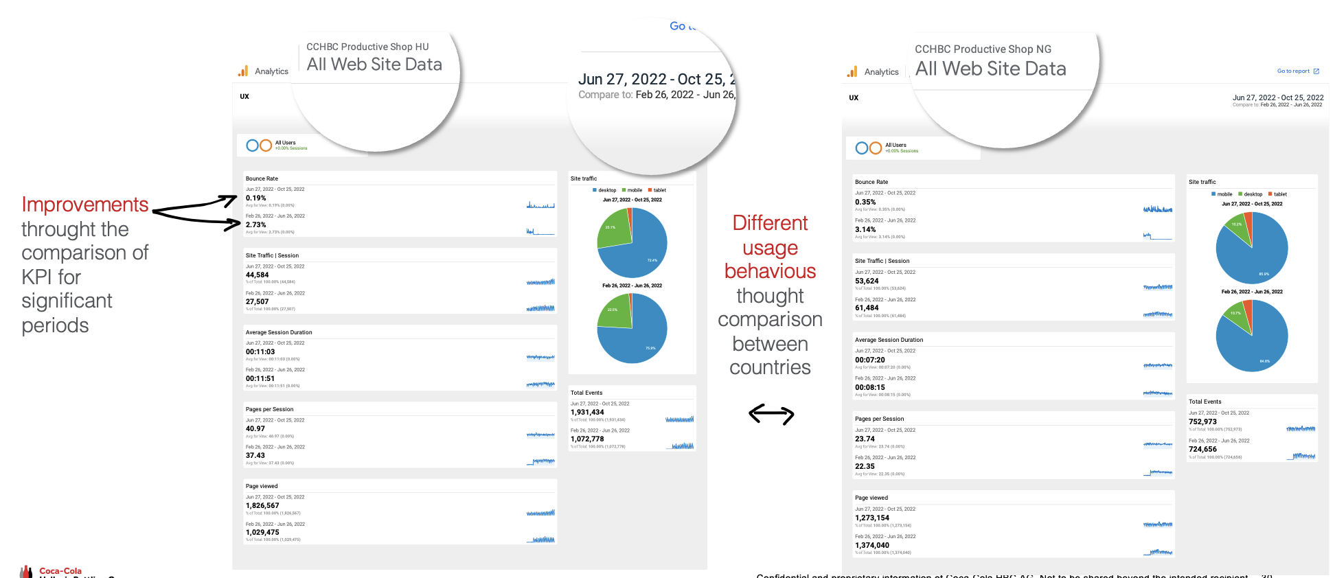 Quantitative KPIs → custom dashboards enabling comparisons across countries, devices, and periods